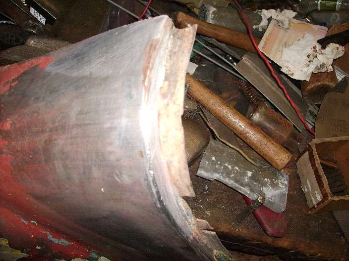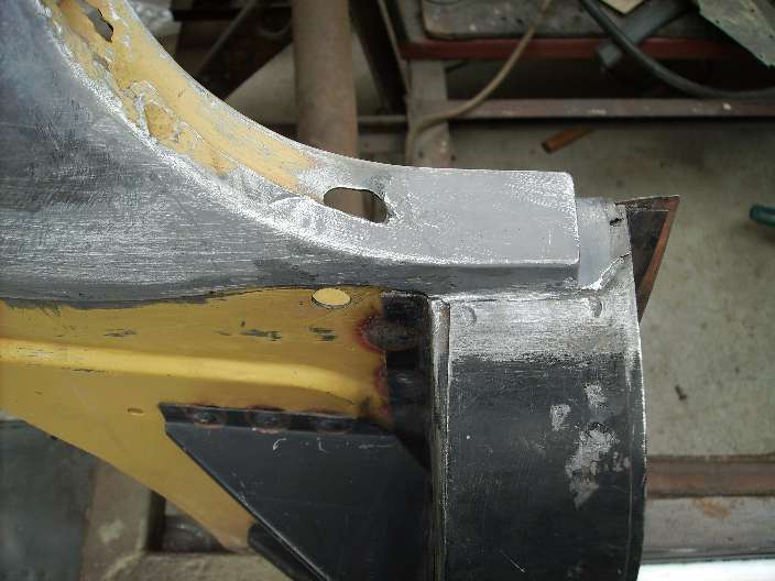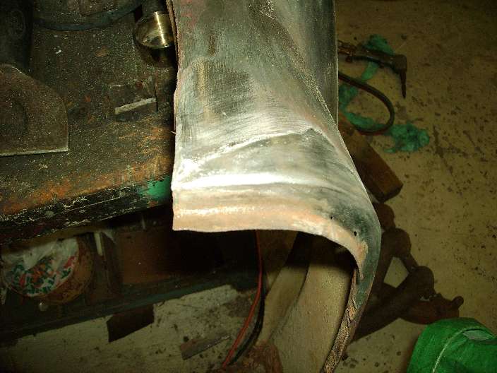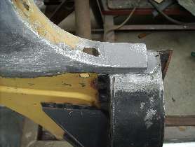 "The other place was where the door met the rear guard. This was done for two reasons, to improve the gap between the door and the guard or bring the guard up to the level of the door. Also the cars were lead wiped under the rear corner cockpit rail. In one photo I have removed some of the lead to give you an indication of the thickness required to bring the guard up to the level of the door. Another shows you how the lead was used to improve the gap and you can see that is was done after the shut panel was fitted. The other two photos show where the lead was applied under the rear cockpit rail. One is original and the other is one I have re-done. The photos of the guards came from a car that had been repainted but when I stripped the paint the original green paint and red oxide primer was underneath which proved that this was done by the factory".