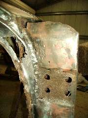 Another thing I have found on Aussie built cars is the holes in the inner guards and the guards have been roughly enlarged so the guards will bolt up. From the photo it looks like they have done it with the oxy and just blown the holes a bit bigger. I have seen a number of cars and they are all the same. The more I see and they are all the same I believe it must have been factory.
