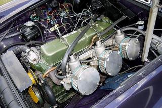 Photos below show this engine installed in a 1972 MGB (after the MGC was already out of production). I think it is a replica of an earlier MGB prototype. The engine is a decent fit in the MGB using the same engine mounts and location for the 1800 cc 4 cylinder engine, and no design changes to the front suspension were required (except maybe stiffer springs).