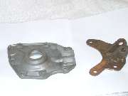 First step is to mill the pivot ears off of the alloy cover down to a thickness of 0.52 inch. Then fabircate the steel bracket as shown here, composed of a three piece steel weldment with machining as shown. See sketch at right (click for larger printable pdf image). Mount with spacer washers of suitable thickness between the cover and adapter plate.