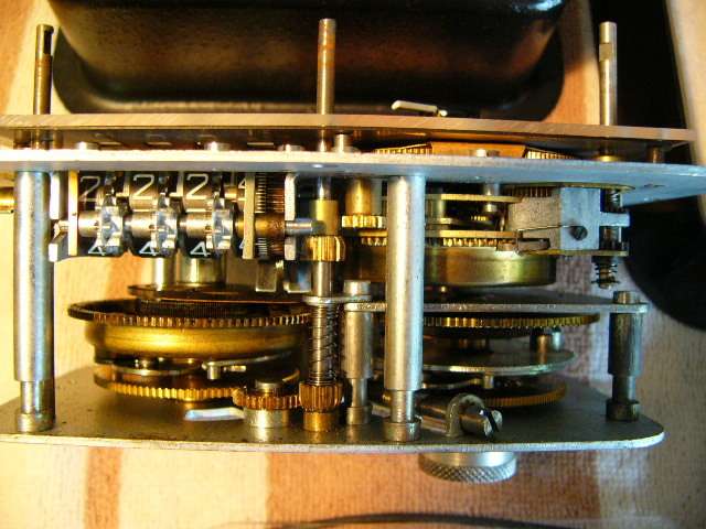 The Halda Speedpilot was an all-in-one mechanical rally computer introduced in the mid-1950s. Based on the speed set on one dial, internal gears drive an extra hand on the clock. The driver is supposed to keep the extra hand lined up with the minute hand to stay on "Pilot" time. Accuracy is only about 1/2 minute as a result. The Speedpilot was popular in Europe where it was only necessary to arrive before your assigned time to keep from getting penalties. U.S. rallies were timed to the second, with penalites for being early as well as for being late, so the accuracy of the Speedpilot was insufficient to determine whether the rally team was on time.