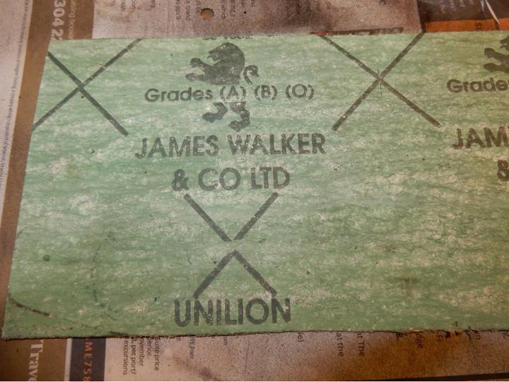 Made up a gasket /spacer from it. -- The thermostat sits inside the green gasket/space, not on top of it, and closes the gap in the sandwich. All went together well so should not leak. Waiting for some blue antifreeze to arrive can then fill and run her up to see what is happening.