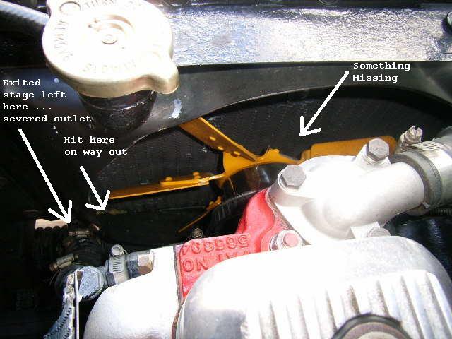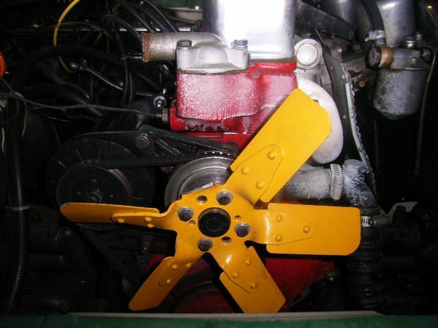 When the fan breaks one blade will separate from the assembly and fly off on a tangent, which could be in any direction. Because of the dynamics of centrifugal force and gravity the most likely direction is between the 10 and 11 o'clock position when viewed from the front. The force of this action depends on the speed of rotation at the time of separation, usually in excess of 3000 rpm or at long term constant cruising speed, but in any case it is a lot of force and energy. This may physically take out the upper radiator hose connection in the radiator top tank (MGA and early MGB), and/or the blade may penetrate the bonnet. Or if you're more lucky it might bounce off of the inner fender or some other part of the chassis in the immediate vicinity and come to rest on the front suspension cross member or fall on the ground. Resulting damage could be anything between very little or very significant, up to and possibly including personal injury, and the risk of being on the bad end of the scale is significant. Laws of probability indicate that this will most likely happen while the car is in motion with the bonnet closed, so the likelihood of direct personal injury is fairly small. But the likelihood of significant physical damage in addition to destruction of the fan is moderately high.