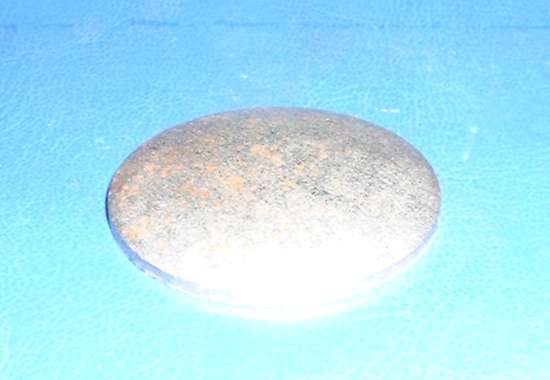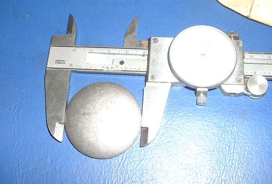 As a demonstration I have here a new core plug measuring 1.620-inch diameter. After bumping the center down a bit more than half of the crown height the OD measures 1.660-inch diameter. This shows how much these things can expand when being flattened. The hole to be plugged is nominally l.625-inch diameter, so the plug has plenty of excess capacity for expansion when properly installed.