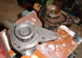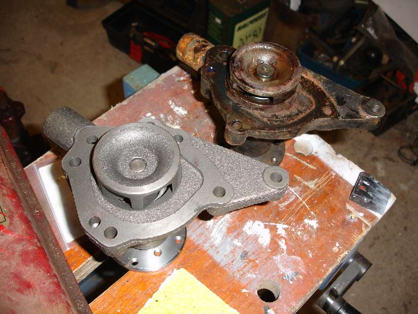 Above, MGA water pump (dirty one) and early MGB water pump (clean one).