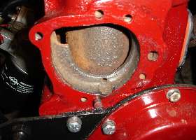 "My relatively new A pump would not fit the B block. The B block uses the same bolt fixings but it also has a locating dowel set into the block. I then purchased a new early B pump from Moss but I couldn't use that easily either for 2 reasons. The first reason is that although the A pulley would fit the belt was out of line with the pulley on the crankshaft. This problem could almost certainly have been fixed by buying the B pulley to match the B pump. The second reason was that the body of the pump protruded about 13mm (1/2 inch) further forward, hence once fan fitted fouling the radiator. This problem could probably have been solved by moving the radiator forward but this has other potential issues.