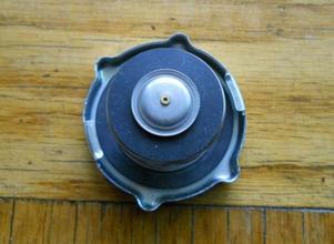 NTG part number B350A coolant recovery cap appears to be a standard pressure cap with a thin rubber washer added and left loose (not bonded). Otherwise it appears to be original style in all respects, including original stamping of the lettering on top.