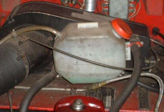 With the coolant recovery parts installed you can fill the coolant fluid right to the top of the radiator filler neck and install the pressure cap. Put a small amount of fluid in the recovery bottle, just enough to cover the end of the pickup tube near the bottom of the bottle when the cooling system is cold. As the engine warms up some fluid will be expelled from the radiator to partially fill the recovery bottle. When the engine cools down the fluid will be drawn back into the radiator. At all times the radiator will be full of fluid to the top with no air space. If there is air in the system to start with, it will be expelled from the radiator with the first heating cycle, and liquid will be drawn back to take its place upon cooling. Fluid level in the recovery bottle will rise when the engine is hot and will drop as the engine cools. As long as you can see a little coolant still in the recovery bottle when the engine is cool you can be assured that the radiator is full to the top, and you will never again need to remove the pressure cap for inspection or refilling.