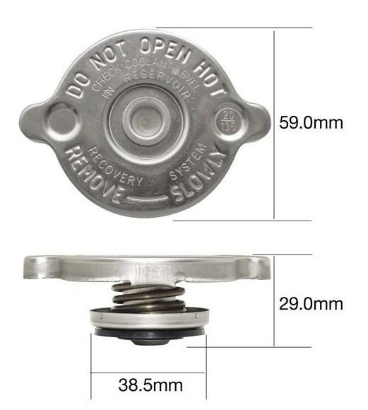 The primary feature of the cooling system pressure cap is a spring loaded foot with a rubber seal on the bottom. This sits against a step in the bottom of the filler neck. Pressure inside the radiator will displace the seal foot to allow fluid to escape so it doesn't explode the radiator, with the relief pressure determined by the selected spring force. Higher pressure allows for higher working temperature without allowing the coolant to boil. Early production MGAs used a 4 psi relief cap. Later production cars used a 7 psi relief cap, which is generally considered to supersede the earlier part.