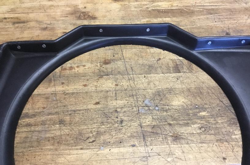 "I’ve found that my Moss plastic shroud has a tendency to bow outward when it gets hot. When first installed it bowed out. I re adjusted it hot and the next morning the fan hit it when it was cold. I adjusted again and lived with it. While installing my new radiator I decided to do something about it. I used a piece of 1/2 x 1/8 steel flat bar and bent it to the profile of the shroud top. Then drilled it and tapped the bar for #6-32-UNC screws. Marked holes and drilled shroud.