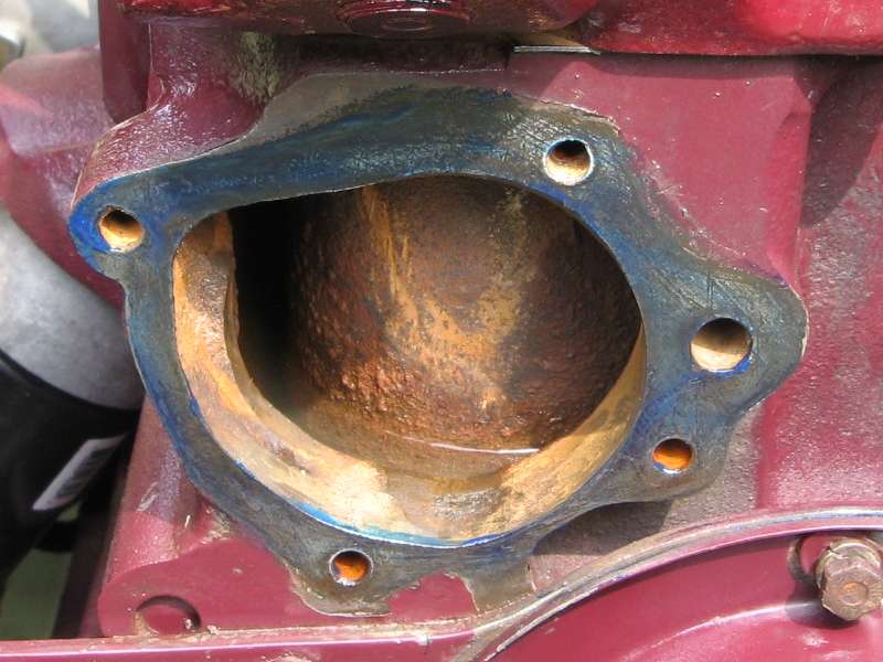 >>It did take a lot of grinding and made a mess but it was easy. I just had several wheels handy and changed them out when they got hot or less effective. At about $1.50 each it's no big deal. I think I bought 4 and used 3. They all still look fine, though. Let the wheels do the work. Cut for a while, stop and let the motor cool and my back rest, start again. Maybe a couple hours total with setup, measuring, recutting and fine tuning. The only part that concerns me is at the bottom right. Seems a bit thin on the block casting but there is enough mating surface for the gasket so it should be OK.
