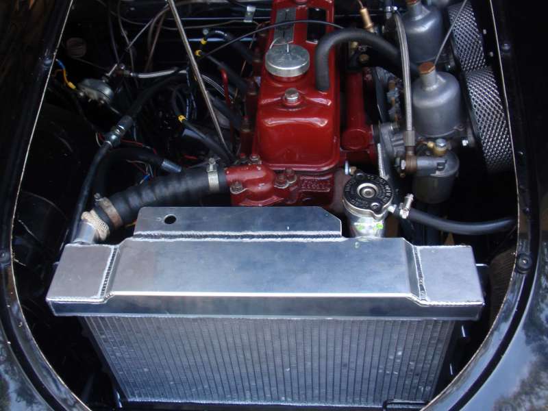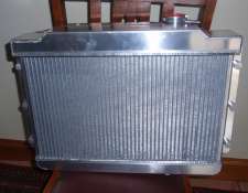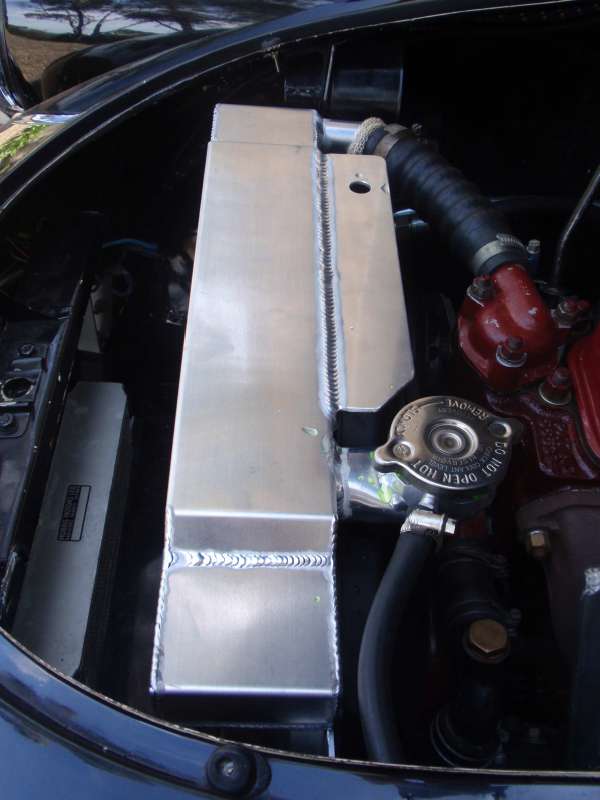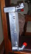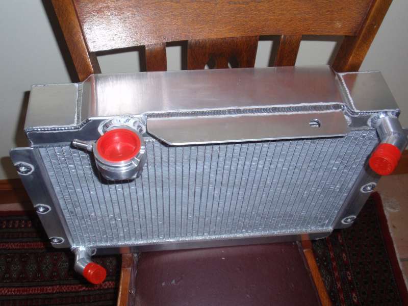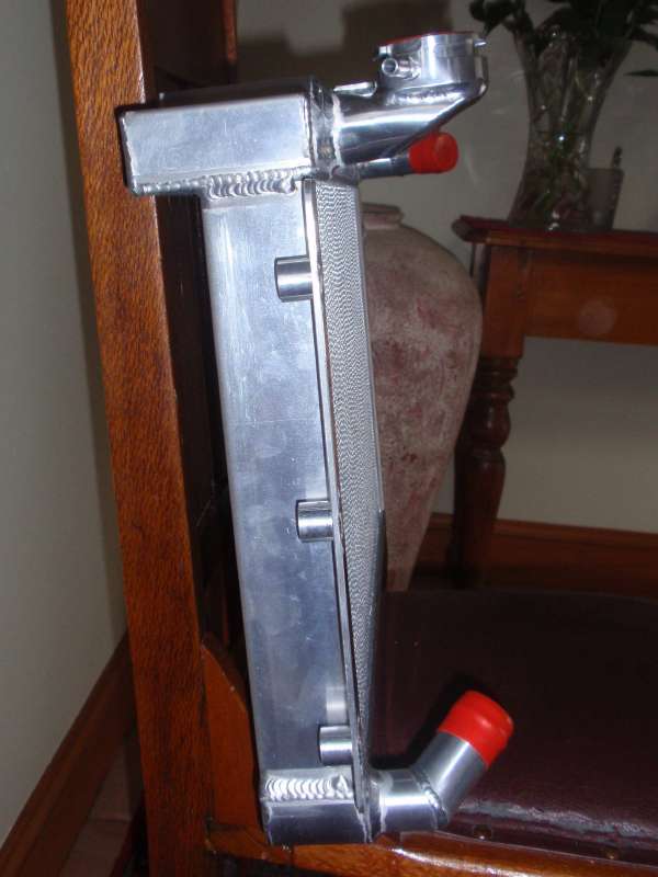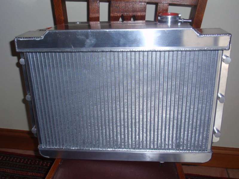 This one has the more traditional down-flow configuration, so it looks a little more like the original radiator (sort of). Photos provided by Thomas Aczel in Australia. The aluminum radiator is built by PWR.