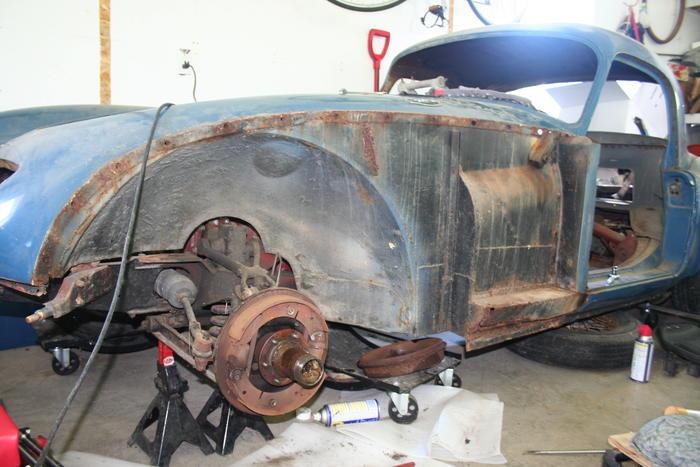 Notice the residual roadster windscreen mounting socket on the inner wing.