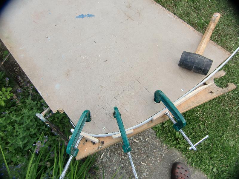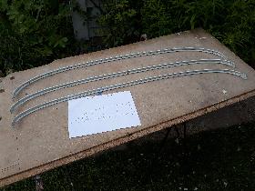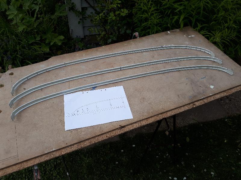 "I made the bows for the roof lining according to the sketches and drawings we made and got them near correct, only had to move the holes by <1 cm. I think you better do them and drill the holes when the bows sneak along the roof".