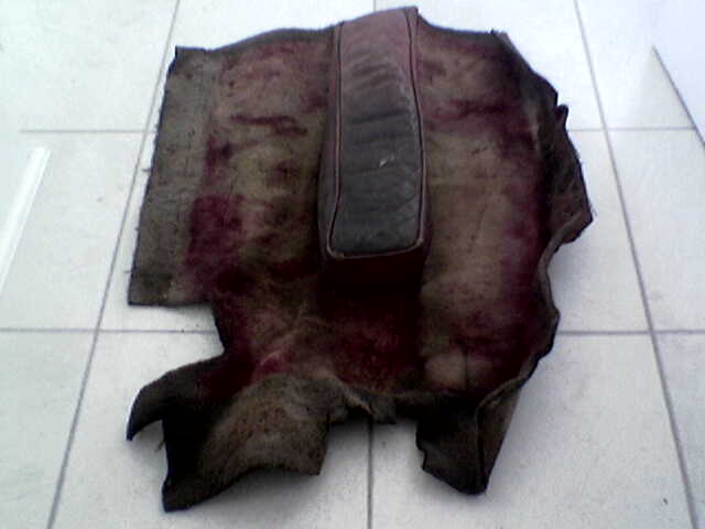 Here is an original 1961 coupe red leather and pvc armrest, on the original grey carpet.