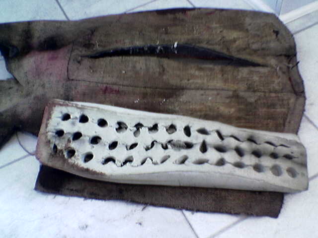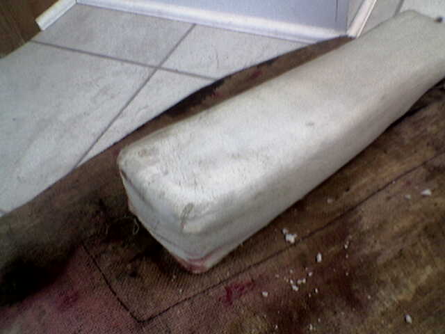 foam had not collapsed. Moulded on the bottom of the foam is "DUNLOPILLO LATEX FOAM CUSHION" on one side and "MADE IN GREAT BRITAIN" on the other.