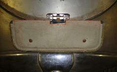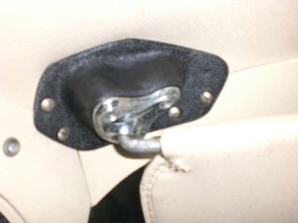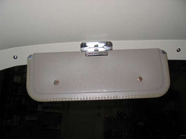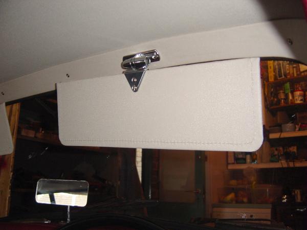 The varnished wood trim in the picture above is not original. This was originally covered with the same cloth material as the headliner.