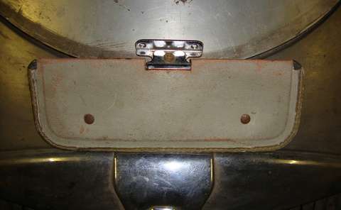 Note: I believe it has been confirmed that the hole spacing for mounting either the triangular or rectangular bracket is the same, so it cannot be known from the mounting screw locations which hinge was originally installed. [Barney]