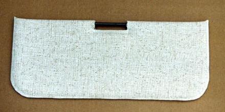 "I made them at 370x115 mm. Wifey did the sewing on the inside and then turned them inside out. The excess material was cut off as close as possible to the stitching or else it shows. The hardboard size was cut after the stitching so that it stretched the material the right amount. The open end was stretched over the edge of the hardboard and glued with contact adhesive. When finished they looked okay but lacked that factory finish look so I took them to my local car upholsterer and he did a sewing line along the perimeter through the hardboard. You need to give him a trial piece first so that he can get the sewing right".