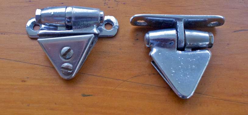 Peter Hackney in Australia reports a different possible part number for this triangular hinge, 7/28988-9 referred to as a"Friction Hinge Visor Bracket". Last purchased in Australia around 10 or so years ago (circa 2011) for a colleague, but when recently trying to get them for another chap, the company, who were a general hardware seller, they had closed. Another seller of similar product lines said that they were no longer made.