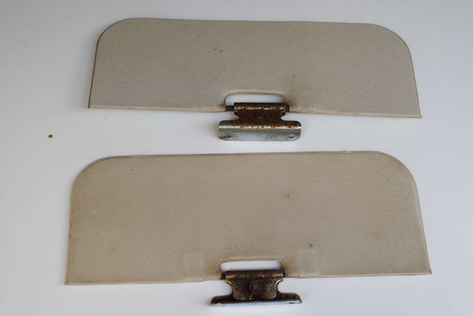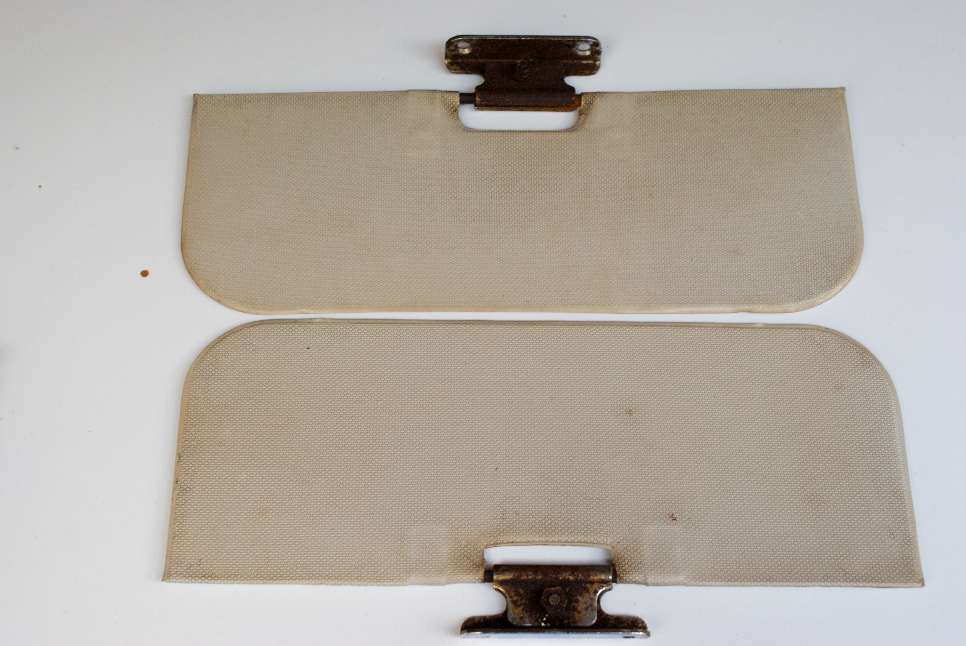 Visors from an Austin A30 with similar fabric but different hinges and heat sealed edges.