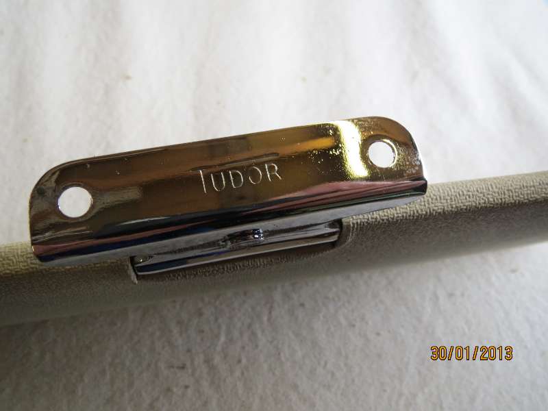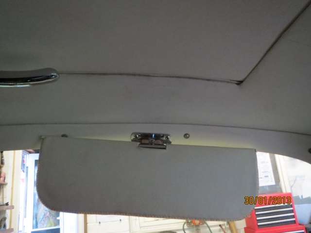 I went to see YM1 1560 today. You may recall YM1 1560 was fitted with one (not two) factory specified sun visors. Richard tells me the car is as original, including the visor hinge, although he had the sun visor itself recovered. Richard was kind enough to take the visor off to show me the 'Tudor' stamped on the back.