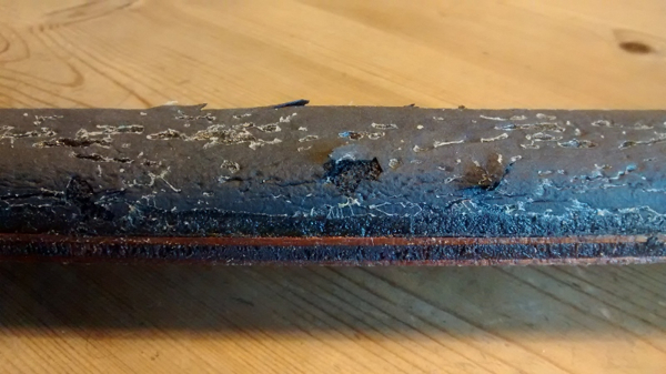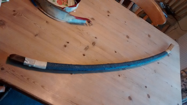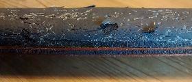 "The next one shows the whole piece, with some of the rubber covered by sticky tape. The last one shows the tired rubber on the ply; new rubber section ordered".