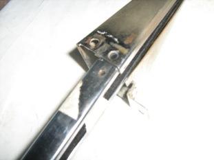 Make 2 rectangular washers 17 x 30mm drilled 5mm to bear against the underside of the slots in the aluminum skin where the quarter light fits to top of the door.