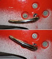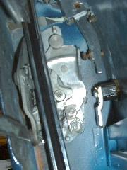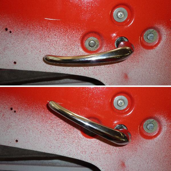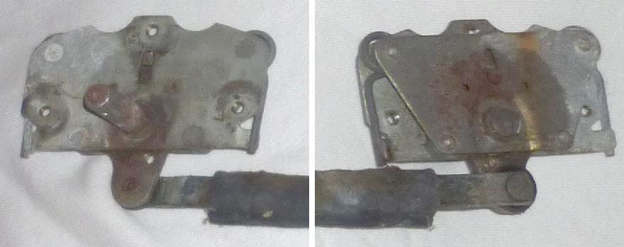 Above: Left side door latch, pull strap and inside handle pivot, inboard and outboard views.