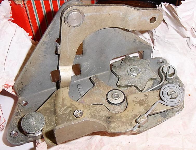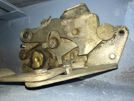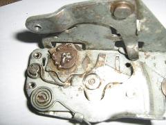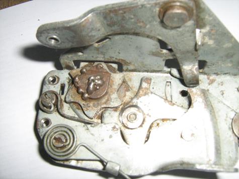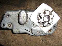 Many Coupe door latches have been repaired due to the failure of the mechanical connection between the ratchet star wheel and its shaft which connects to the external pinion. The first picture below shows an OEM RH latch recently for sale on EBay and the next two pictures show repaired latches.