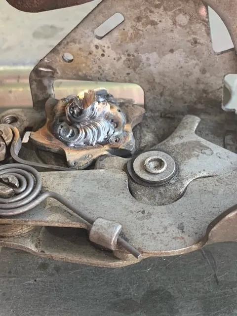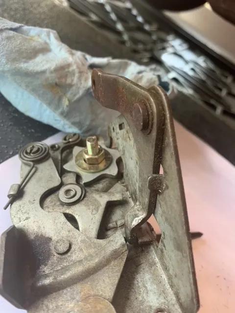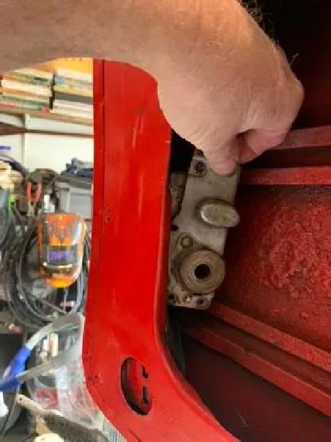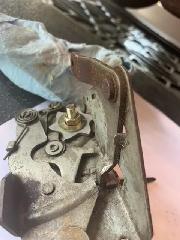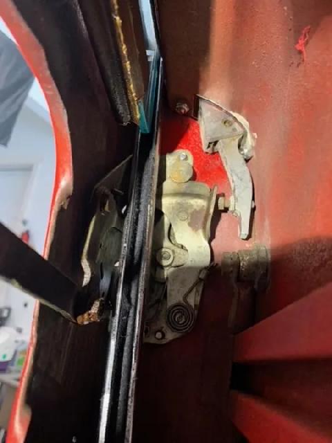 On my 58 MGA coupe the pinion fell off the door latch, it had been wobbly for a while and closing the door was always difficult with the wobble. Any one who has disassembled an MGA Coupe door knows the difficulty in removing the window in order to remove the door lock assembly and I put this repair off for several months. I had remembered reading how someone was able to remove the lock with out taking out the window and I was determined to try that method. Here's the problem.