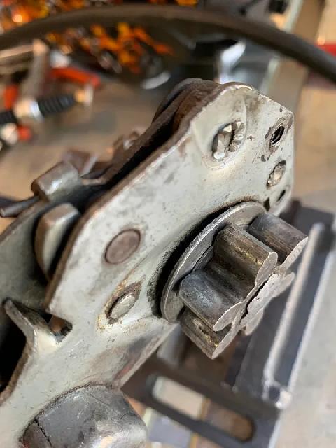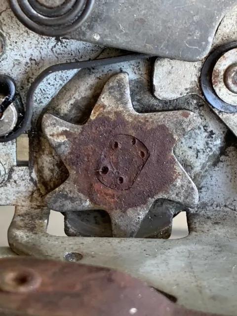 But WHY and HOW did this get happen? The fix was easy enough once we realized what was going on. I had to re-index the star wheel to the pinion and did this by grinding the Double D shaft and pressing the star wheel on, putting it back in the door and then testing it. It took me two filings to get the relationship right, but when indexed properly it worked exactly as it was suppose to. I just need to get the thrust washer and I can finish the repair.