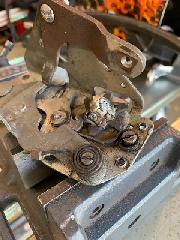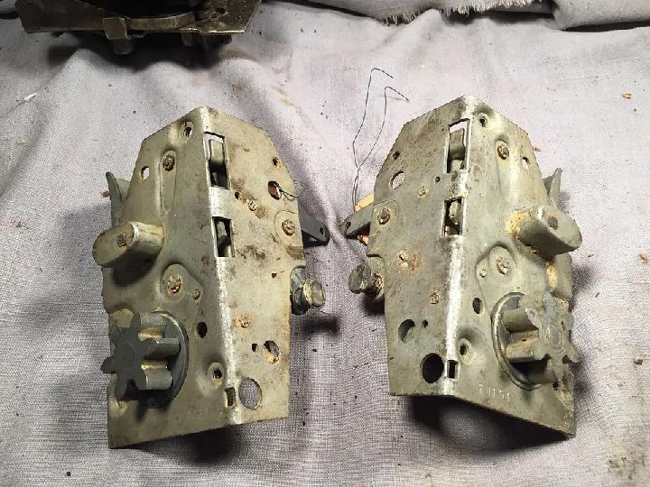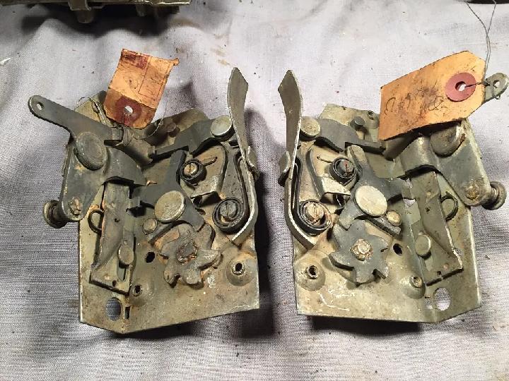 But the question remained where did this pinion gear and different star wheel come from? The pinion gear was a mm smaller in thickness and had a bevel cut on the inside of the wheel and was indexed wrong. I had recalled seeing this mechanism previously at a car show but could not remember the car, so I started the searching. Not British cars from the 1950s, but a wider search of 1950 door locks wielded the results. 1950-1954 Ford/Mercury door latch listed on eBay as 1950 Mercury 4-door rear latch pair, 0M-7426412, 0M-7426413.