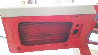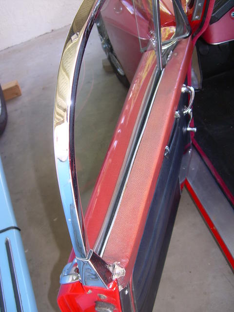 The interior door capping on the MGA Coupe is a two-piece wood assembly covered with vinyl.