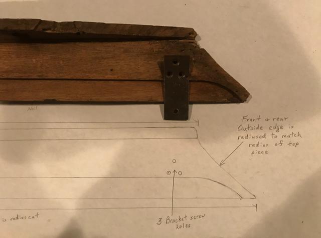 "Here are some pictures of my door caps as I was restoring them. I have an extra pair of door caps that are mostly deteriorated but I may be able to get the dimensions for you. They are two pieces with the top piece being nailed (and probably glued) to the bottom piece".