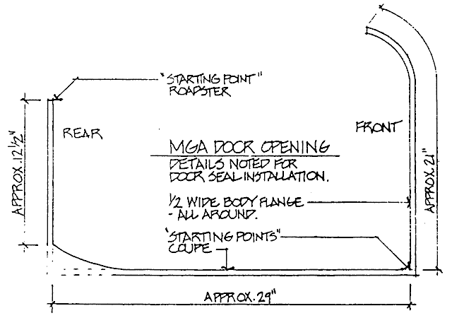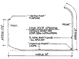 Door seals for the MGA Coupe are similar to the seals for the roadster, except they go all around the door opening on the Coupe, including around the window opening in the roof line. The Coupe seals would originally start and end at the lower front corner, but Todd Clarke recommends start and end at bottom center for a neater appearance. Please review fitting instructions for the roadster door seals first in article INT-108B. Then go to the Clarke Spares & Restorations web site and read the instructions for installing this door seal.