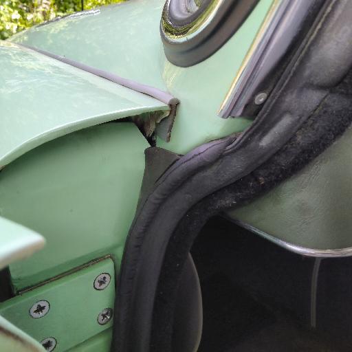"Attached are what I think the door seals should have been like. The rubber at the top is not the correct piece as I have not yet found one to copy. I made it from the incorrect (i.e. solid) boot sealing strip. It certainly cuts down, but does not eliminate, the draft"!