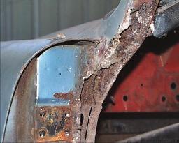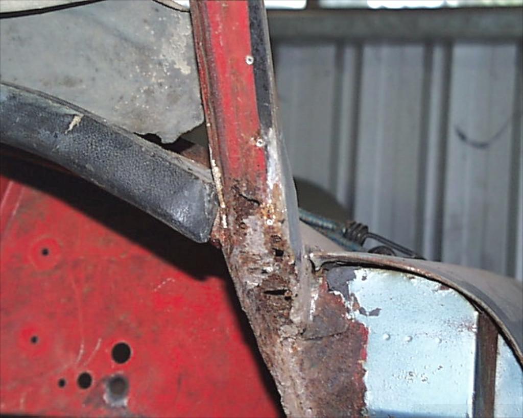 A few people who had seen the seal said that the pads AFH4822/23 were good water traps for rust promotion. The horse-hair blocks in the pillars would also contribute to rust in this area, as shown below.