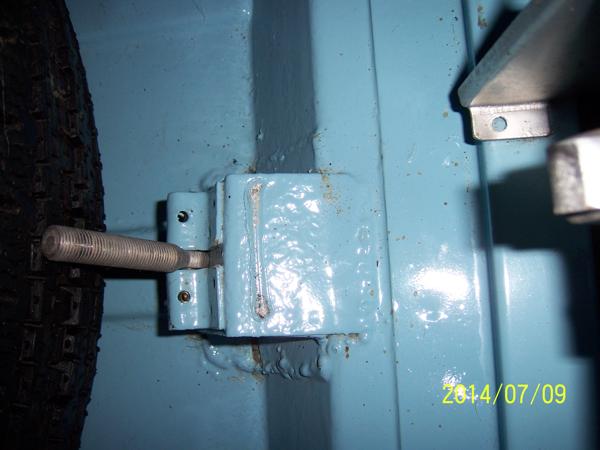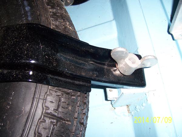 Notice the bulkhead fittings with the front hold down clamp and "U" shape brackets to hold tool roll straps, and the tire clamp relocated to center at back.