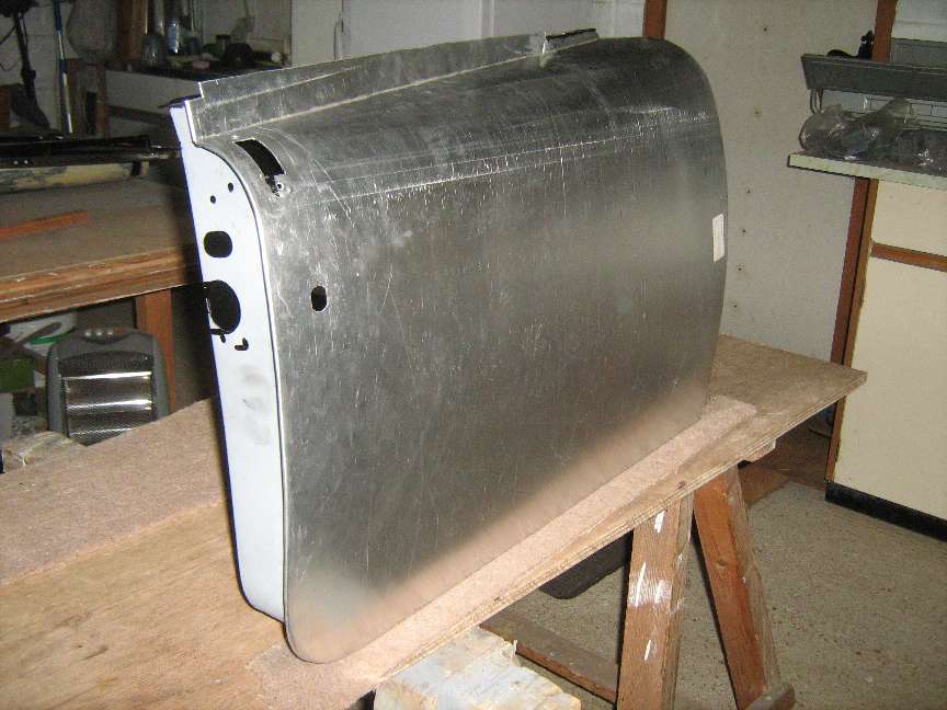 This Coupe door skin is from Metal Mickey. I will paint the inside of the skin crimp and start with location of the top edge to the door frame and work on from there. I have been advised that I should clamp the door frame securely to prevent distortion during fitting and crimping of the skin.