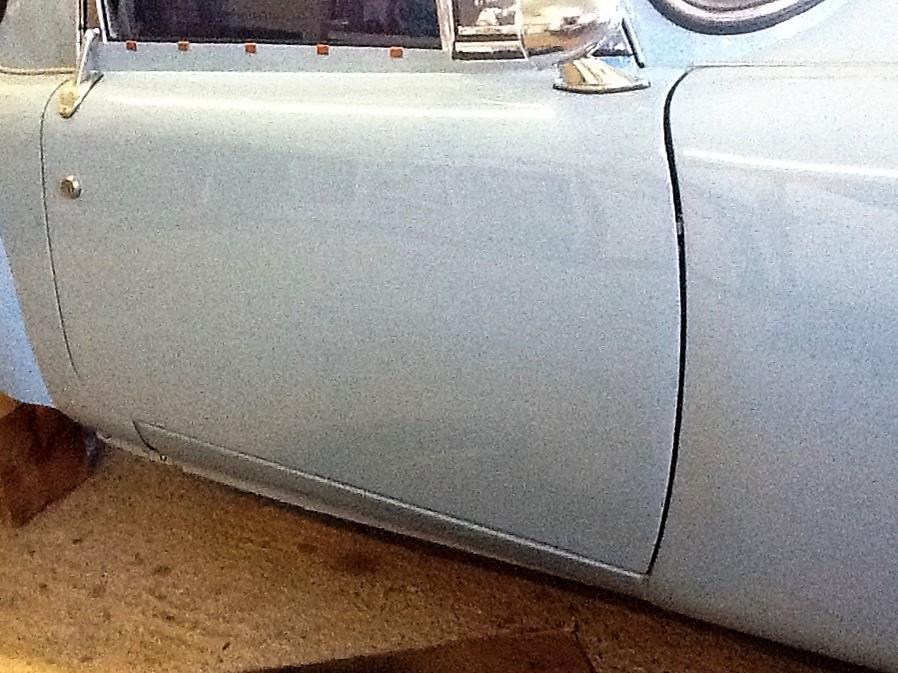 I needed to have a special RH door skin with more material on the rear edge and I thought I could get one which had been formed but which had not had its edges turned up. Impossible. Sheet metal workers wanted hundreds of pounds to make a special, so I decided to make my own out of 1.2mm soft aluminum sheet. I bought half of an 8’x4’ sheet with the potential of making a second attempt if the first one failed.