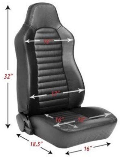 Here are the dimensions on the website. What they don’t show is the rear seat bottom dimension which is approx. 19.5” and will not fit into the space. The seat bottom, right out of the box fits very nicely, with room to spare, in the car with carpeting/padding installed. This is the main reason I decided to keep the seats and make hinges etc".