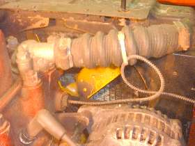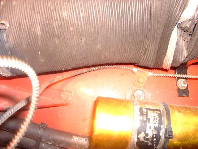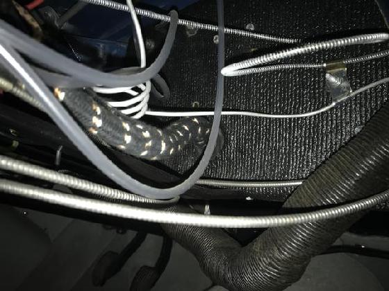 Notice in photo on left, the temperature sensor pipe with coiled cover wire is coiled around very close to electrical terminals an back of dash. Recommend you position such pipe coils farther forward near the firewall to avoid shorting out electrical circuits.
