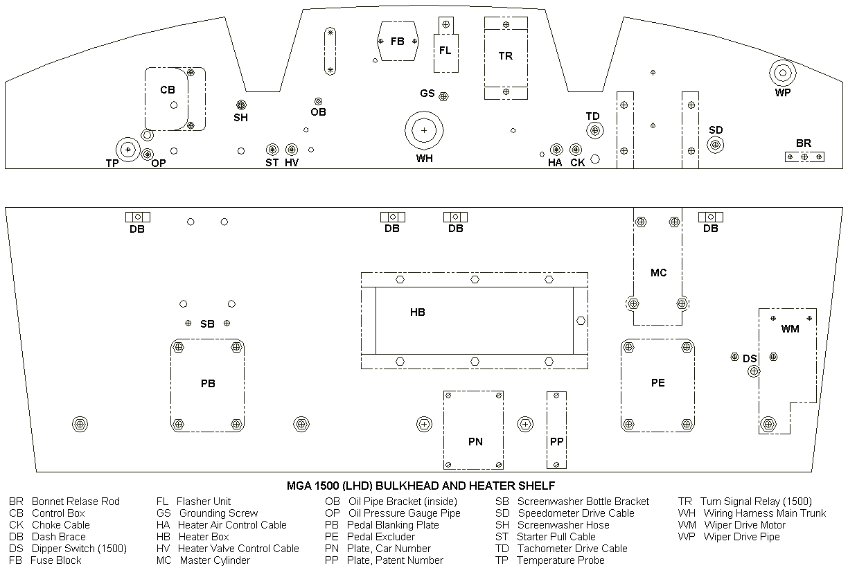 The temperature gauge capillary on the twin cam passes along the left of the engine bay and then capillary passes through a 1” hole in the bulkhead behind wiper motor.