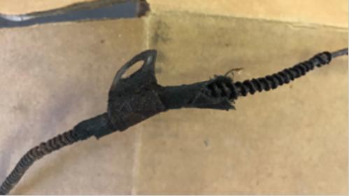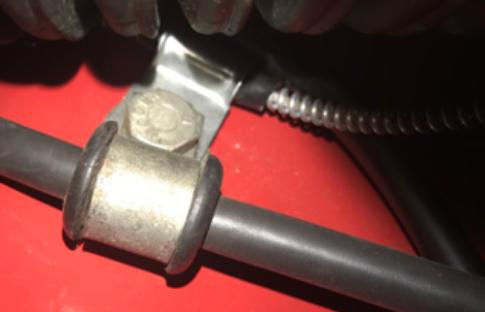 Figure 5: The original protective wrapping of the capillary can be seen where it passes through the P-clip at the coil mounting bracket. This wrap was used for all fixing P-clips.