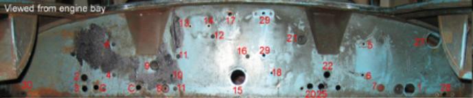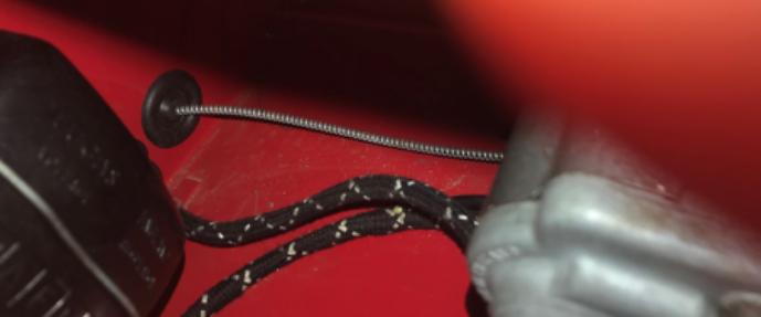 Figure 3: Dash side of bulkhead showing P-clip holding capillary. The oil pressure capillary is held by a P-clip on the same screw.