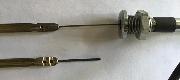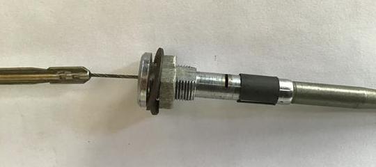The Bowden cable outer is 0.187 OD and can be screwed back into the housing. Oversize outer can be ground down to fit and undersize can be held in with superglue The inner is 0.048 OD. Don't forget to tin the free end of the inner to prevent it unravelling and do that before you lube it up for final assembly.