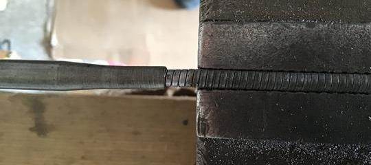 With the inner withdrawn, it can be seen that the cable is fixed into the armature by 2 crimps, not by solder as in the third picture which shows a soldered MGA cable in comparison. The second picture shows the crimps cut down to the hardened cable using a junior hacksaw following which the inner was gripped in the vice and the armature pulled free.