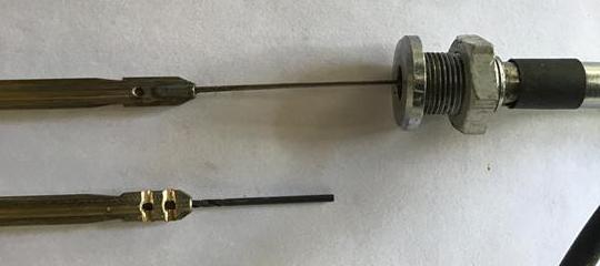 The third picture shows a repaired MGA cable at the top, with its solder hole, and if you are repairing one of these its just a case of unsweating it. The crimped armature is shown with a 1/16 drill inserted to deburr the hole for the new cable. This hole is 1/2 deep.