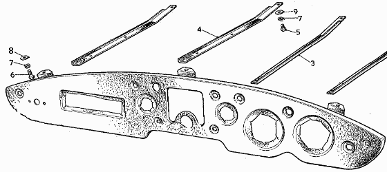 When a Heater is installed the screws in rear end of the center dash braces are replaced by the heater control mounting hardware, as shown in HR-104.